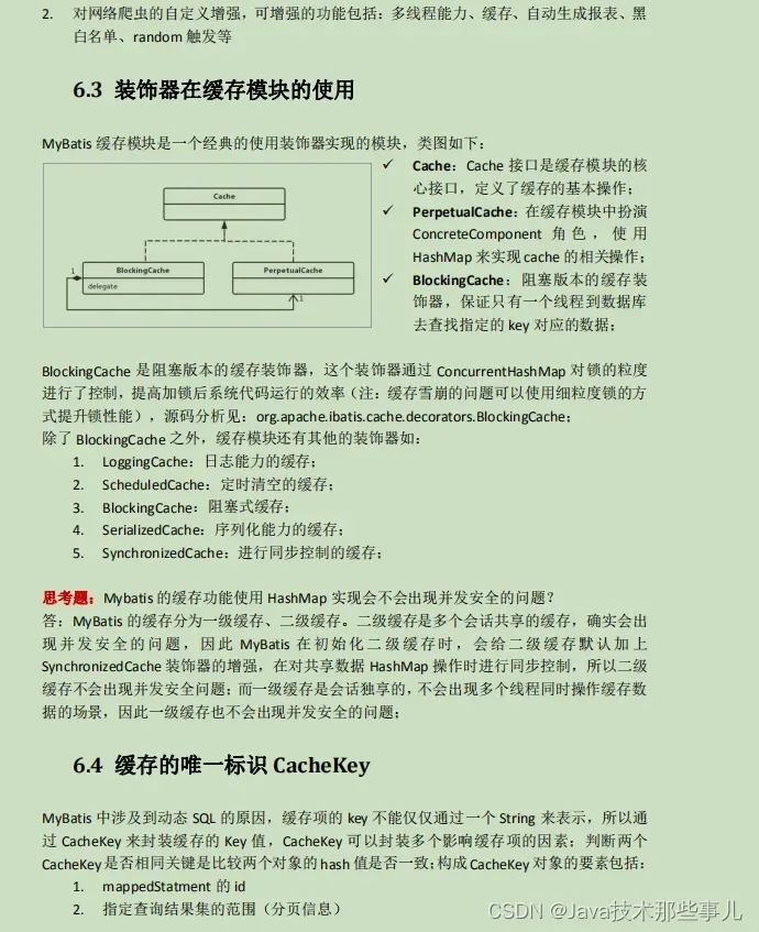 这些方式是静态的,用户不能控制增加行为的方式和时机;另外,新功能的存在多种组合,使用继承可能导致大量子类存在。综上,MyBtis 缓存模块采用了装饰器模式实现了缓存模块。