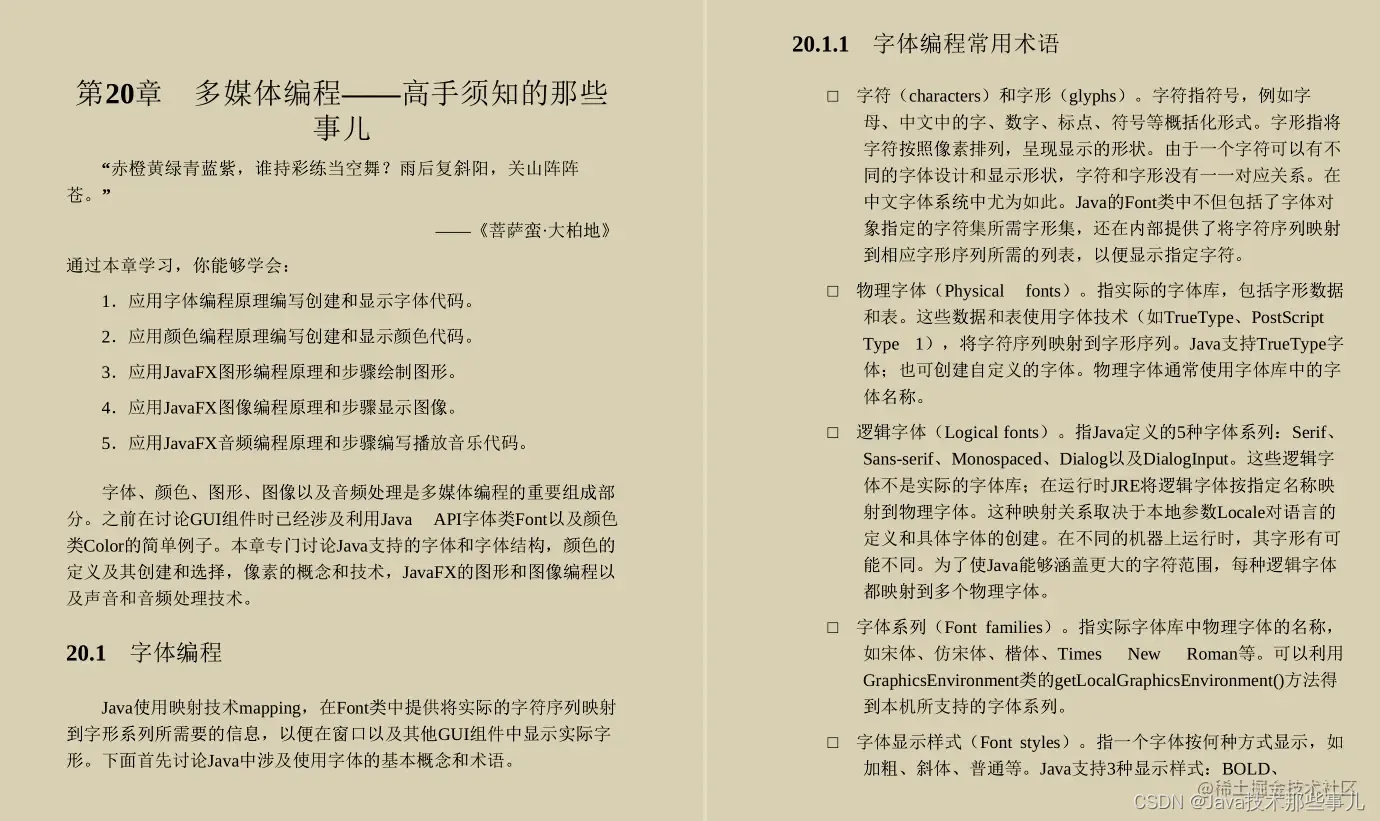 第20章 介绍多媒体编程,引导读者走进Java,包括图形、图像、字体、颜色以及音频播放多媒体编程世界。