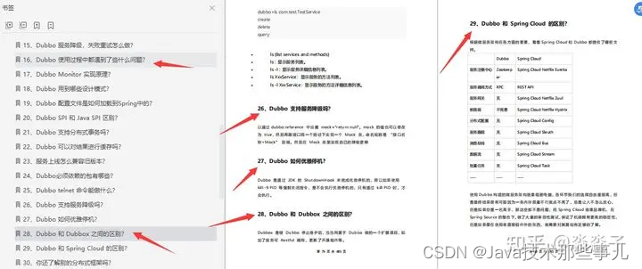 Dubbo这一部分总共30道题,面试提问笔记多的就是Dubbo和Dubbox、SpringCloud进行对比和分析,当然这些面试题我也整理了很多。
