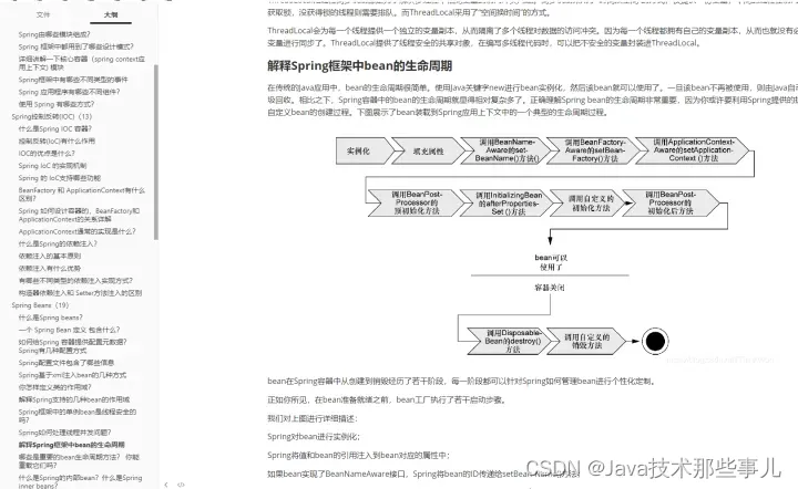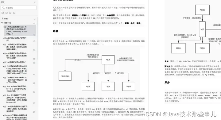 以上所有问题的答案都有相应的解析文档参考,网上也有一些类似的面试题总结的文章,但小编这份绝对是数一数二,剩下你了去网上一个个找的时间!每个知识点都有左侧导航书签页,看的时候十分方便,由于内容较多,这里就截取一部分图吧。