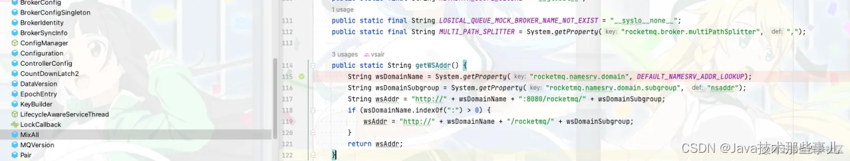 咋看好像是直接设置了NAMESRV_ADDR地址,其实我们随便看看源码发现他也是设置的是wsAddr地址