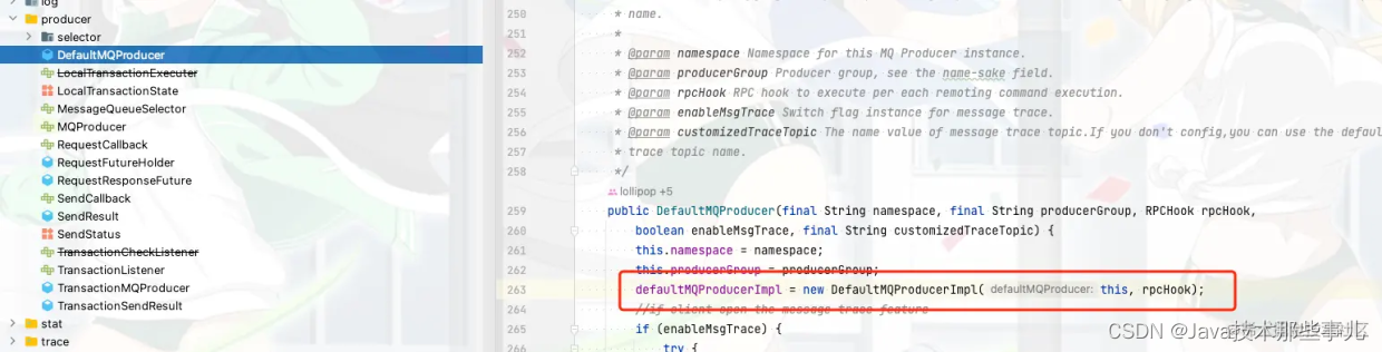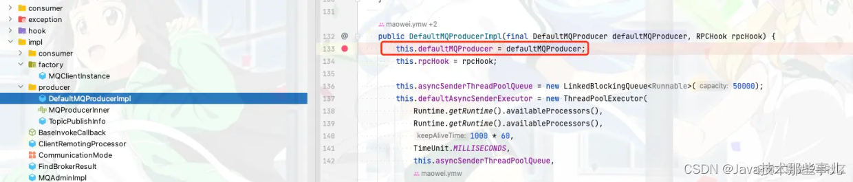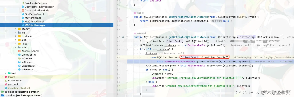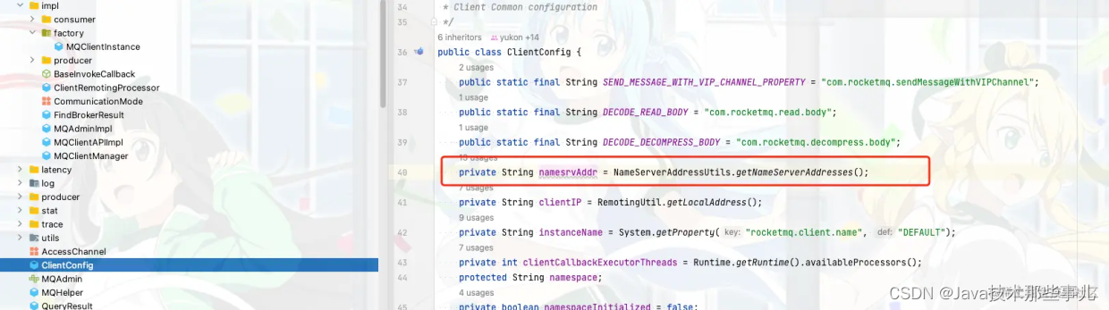 这里的 ClientConfig实际就是 DefaultMQProducer,也就是我们发送消息的第一步,创建一个 DefaultMQProducer