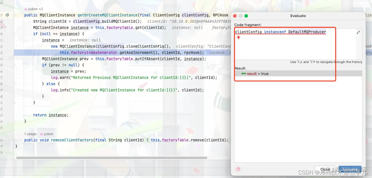 但是这里的clientConfig就是DefaultMQProducer,我们可以通过debug的方式去确认