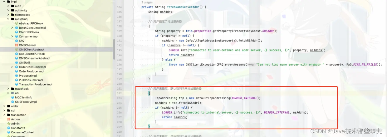 从上面我们可以确认最好的方式是通过http方式获取namesrvAddr地址,那么为什么我们使用阿里云的ons-clinet是这种方式呢