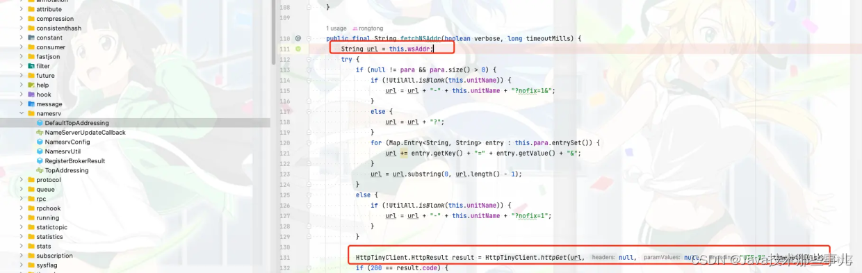 进到方法fetchNameServerAddr里面我们会发现是通过TopAddressing类的fetchNSAddr方法