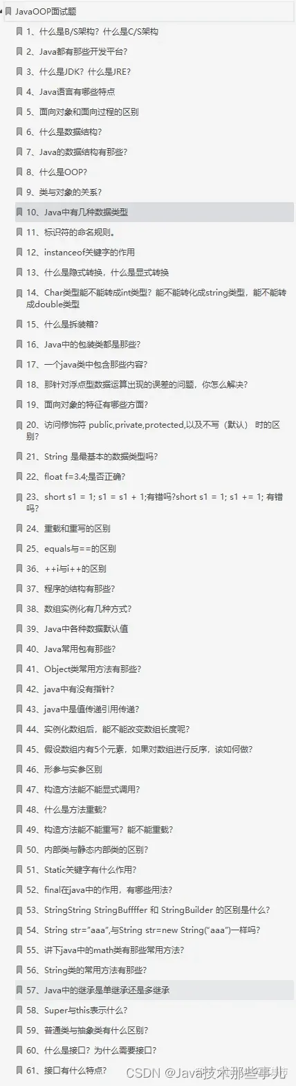 本文分享了一份在GitHub上广受欢迎的Java面试神技文档,涵盖了从基础到高级的Java技术,包括OOP、集合、异常处理、多线程、JVM、数据库、NoSQL、Spring全家桶、分布式架构、数据结构等多个方面。文档详细且全面,旨在帮助Java开发者更好地准备面试,提升技术水平,以赢得互联网一线公司的职位机会。