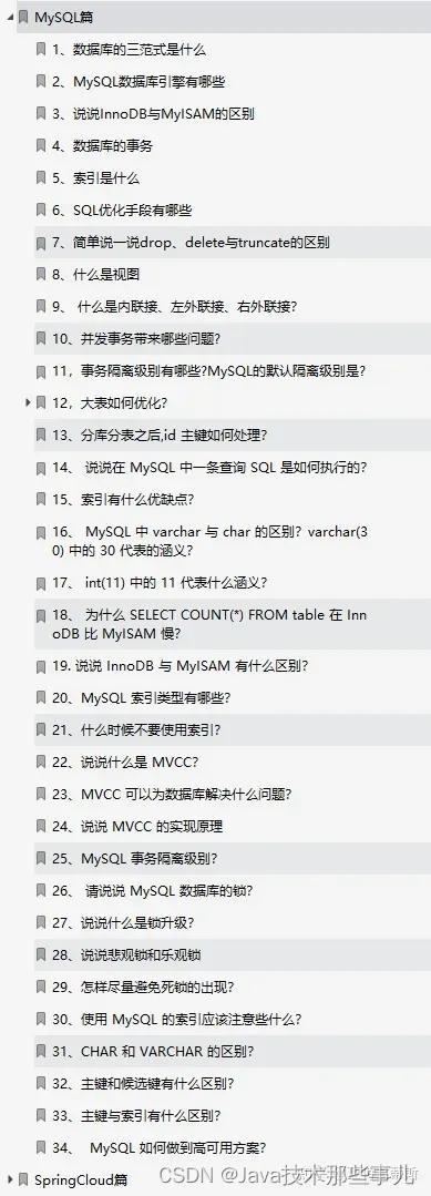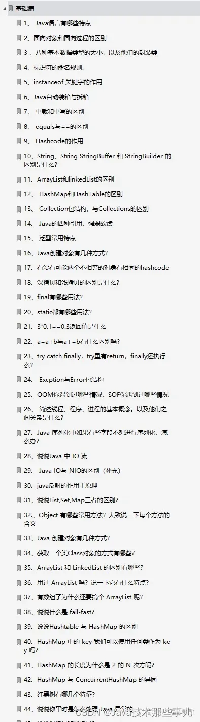 这份面试总结比较多,就不一一的详细介绍了,粗略的将主要内容展示一下,其中含有20+的知识点: