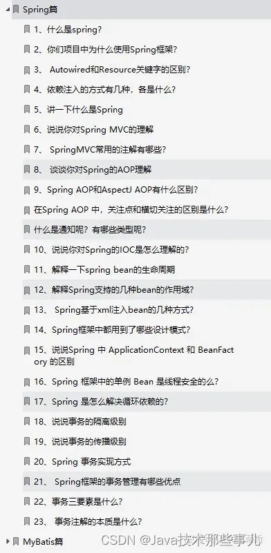 一个人的时间精力是极其有限的,在这有限的时间内做出一个正确的选择,才能事半功倍。所以我的建议是,乘着还没毕业或者毕业时间不久,赶紧提升自己,多看多学,不至于若干年后还是拿着微薄的薪水勉强度日。分享一份12W字的面试手册,其中涵盖的知识点非常全面,对于想要进入大厂的同学,在面试上会有很大的帮助