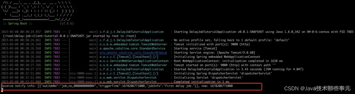 delay-job触发通知支持http、grpc、kafka,本次使用http协议通知。测试使用springboot开发了一个简易的http接口,用于接受任务触发通知。为方便,客户端、服务端部署在同一台机器。