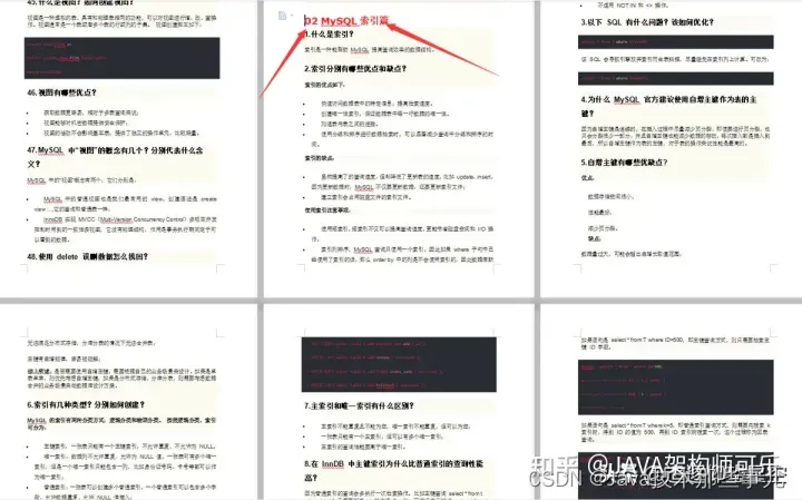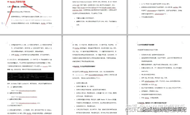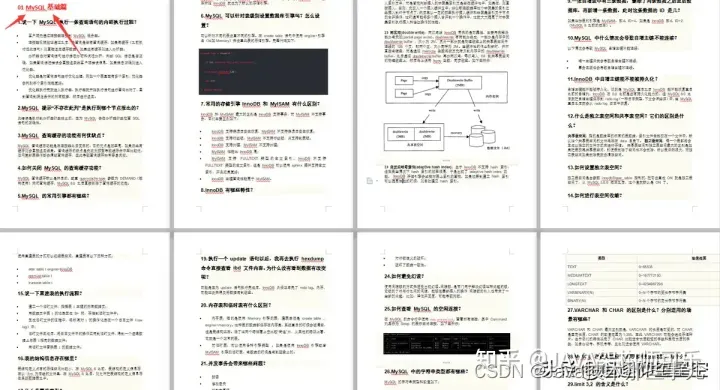 注意注意:由于有基础、索引、锁、日志、调优、开放问题等几大部分,题目有点多,下面先给大家看问题,答案的话都有整理,不过由于篇幅原因不方便全部放出来,这边就暂时是截图展示一些。但是无论是上面的MySQL思维脑图也好,还是下面的P8MySQL问题(附答案)也好,皆可免费分享源文件