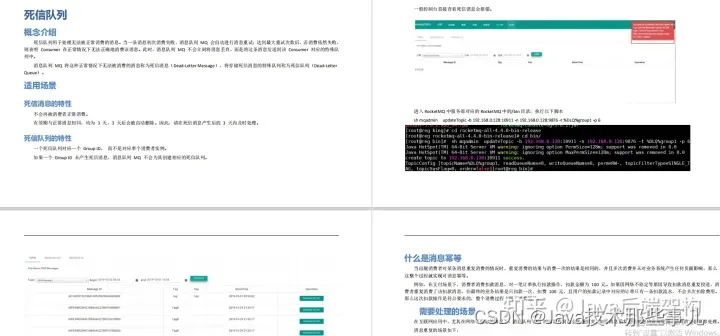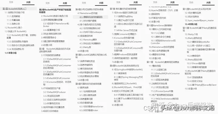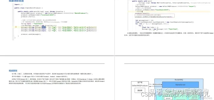 然而在学习中苦于缺少参考资料、遇到问题缺少专家指点、看源码掉入细节耗费大量时间精力、缺乏指引的最佳实践。因此在这特地整理3份消息中间件学习小册分享给有需要的朋友,从原理到代码最佳实践全方位指引,知识原理讲解采用图文并茂的方式,并将原理穿插到实战中!由于篇幅原因,本文只展示了目录和内容截图