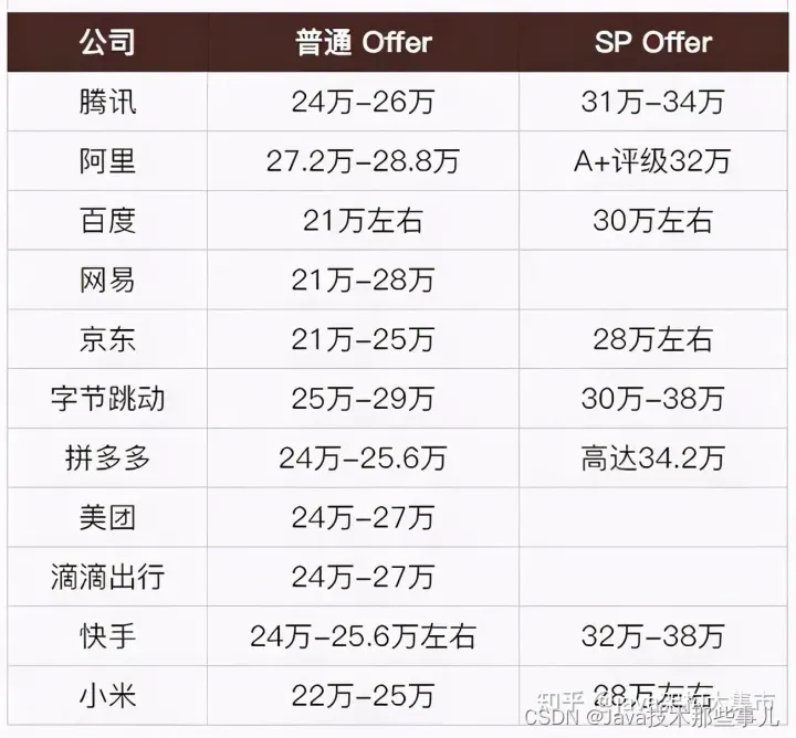 看下面这张网上热传的大厂应届生薪酬表就知道了,SP offer甚至能拿到30W以上。