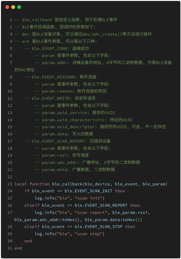 ble_callback是自定义函数,用于处理BLE事件,详见下文第5)部分说明。