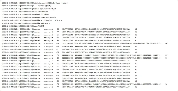 通过LuaTools日志打印,可查看已扫描的附近蓝牙设备信息。