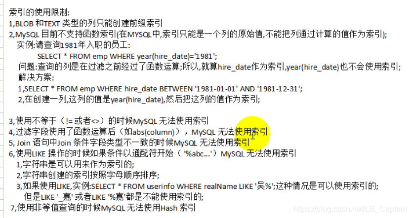 继续上一篇的介绍,这里记录索引使用的限制和创建索引的选择