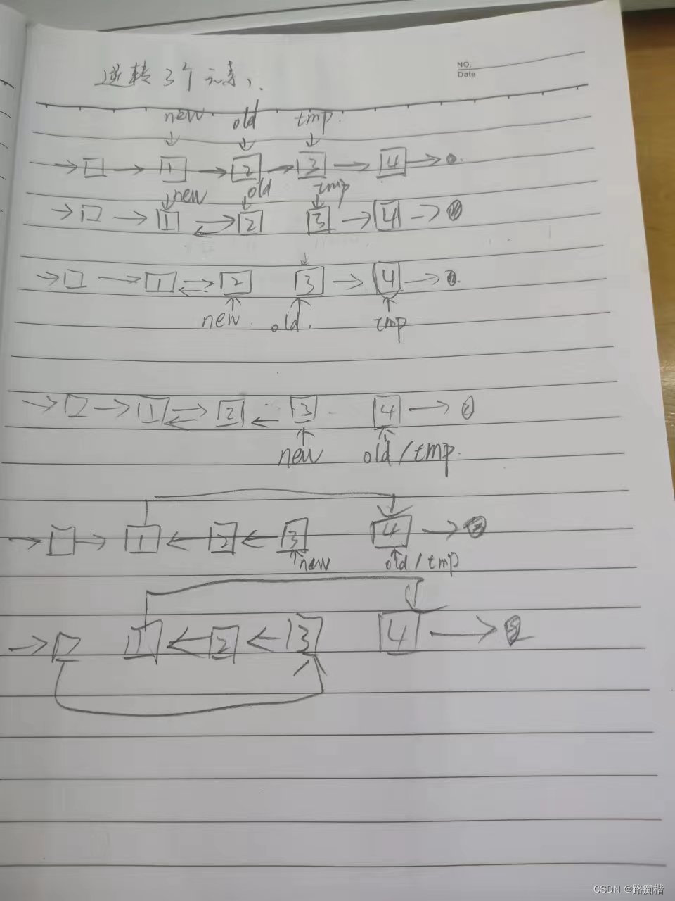 1.建立三个指针,用old指针来指向需要更改的节点,用tmp来储存old->next节点