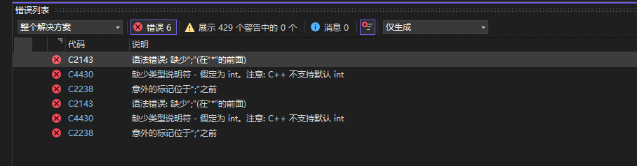提示C2143 C2146 C2238 C2059等错误,可明明语法是正常的