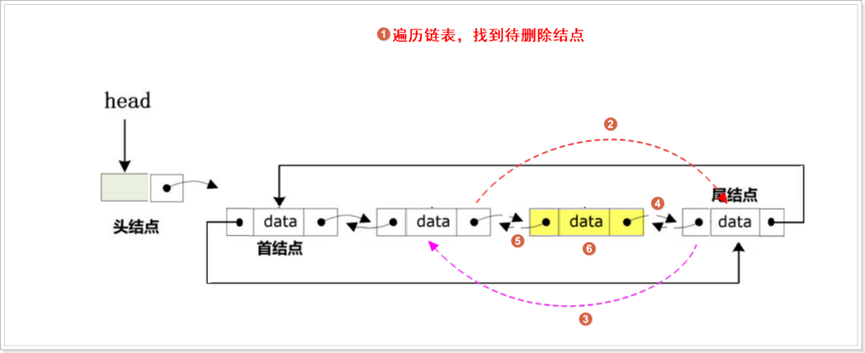 (4) 根据情况可以从链表中删除某结点,此时可以分为尾部删除、头部删除、指定结点删除: