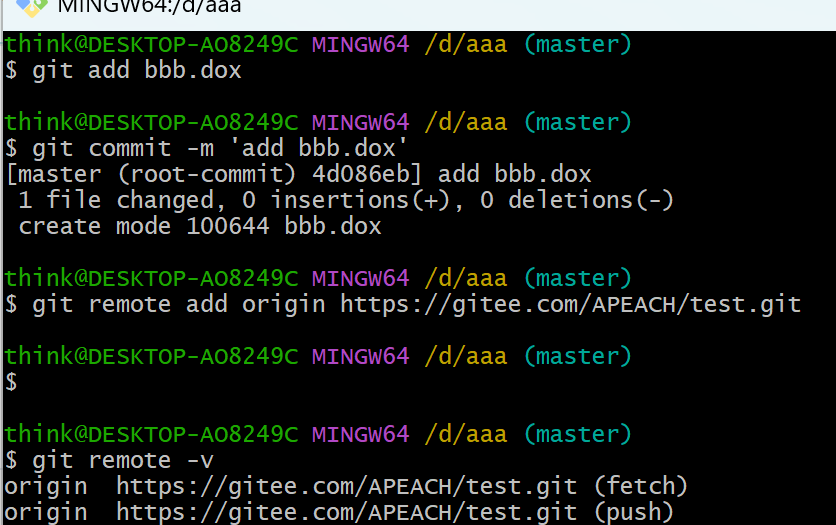 6.推送本地文件到远程仓库并检查云码中的仓库,完成本地文件的推送