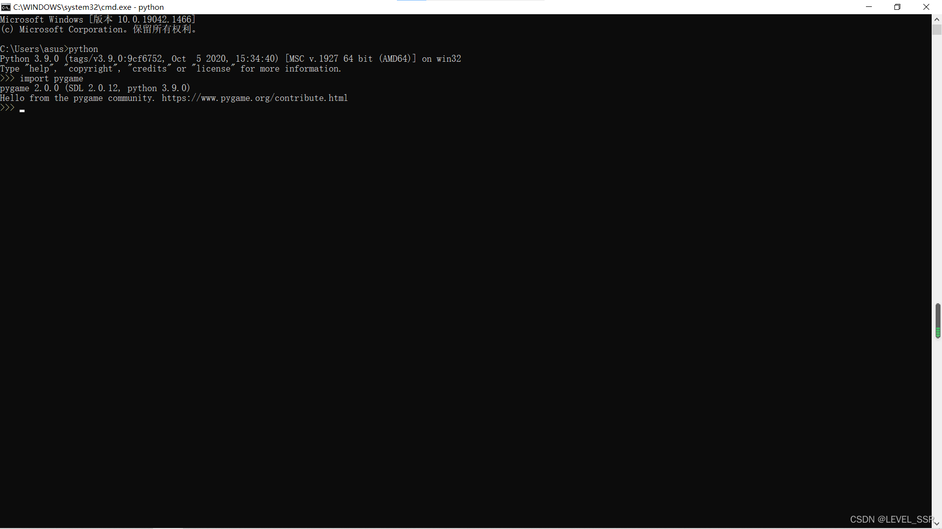 Windows徽标键+R,会弹出一个运行框,输入‘cmd’,回车,输入‘pip install pygame’