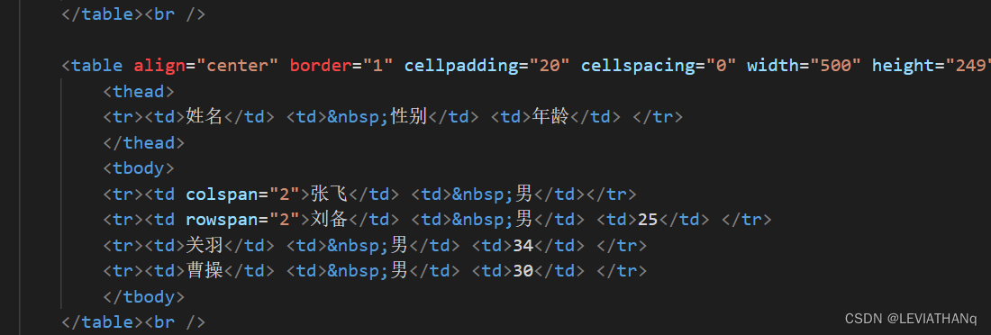 结构标签e:<thead></thead>用于定义表格的头部,内部必须有<tr>标签,一般位于第一行
