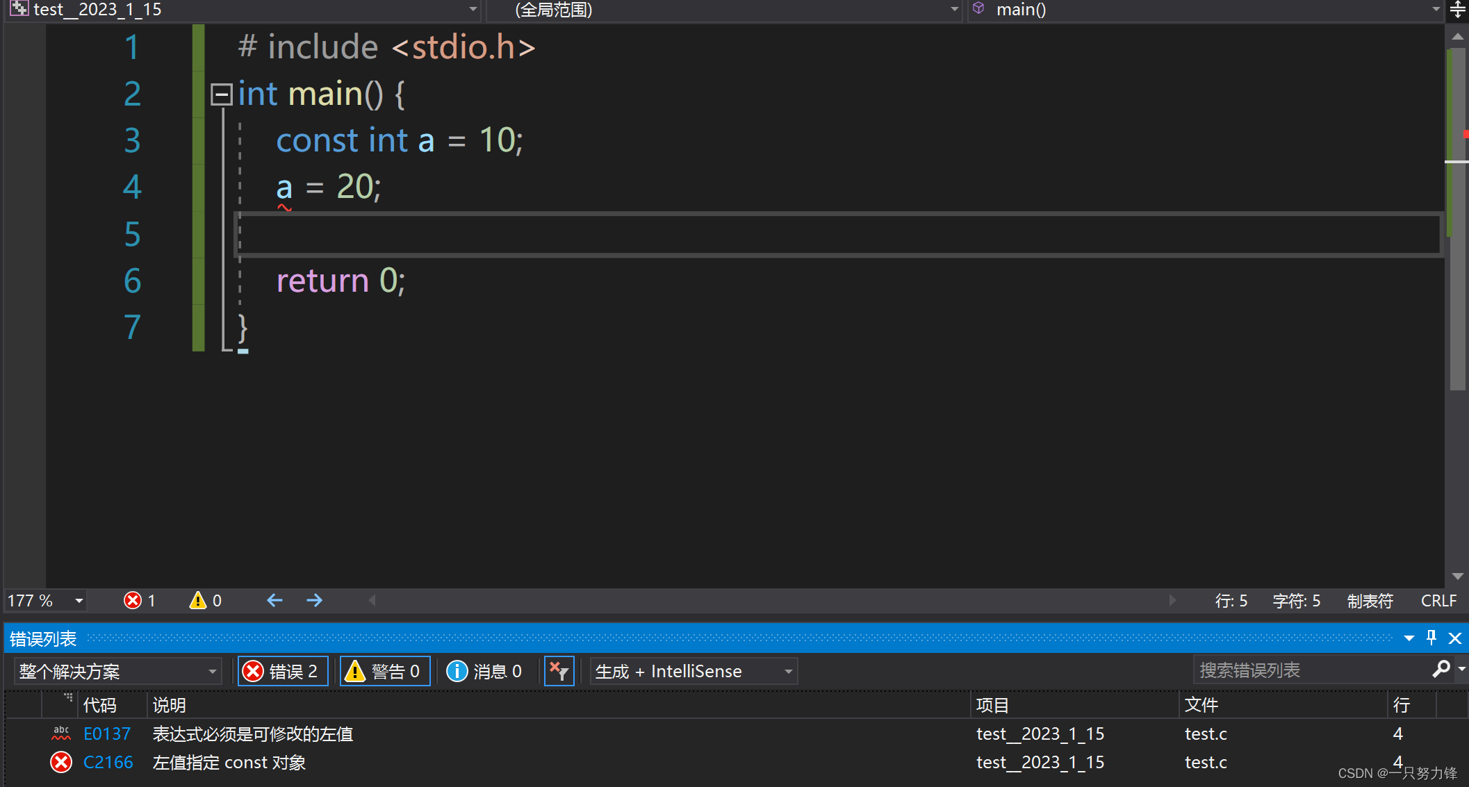 在C语言中,const修饰的a,本质是变量,但是不能直接修改,有常量的属性。