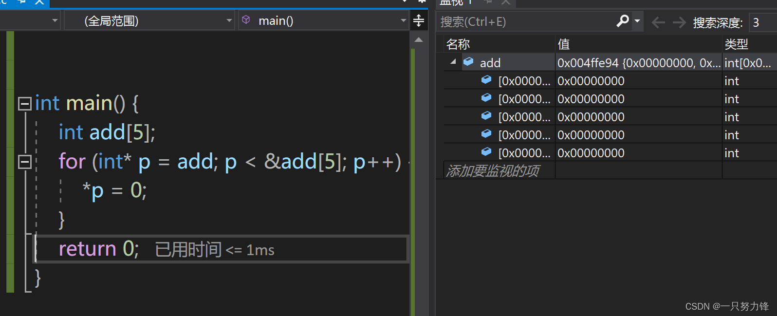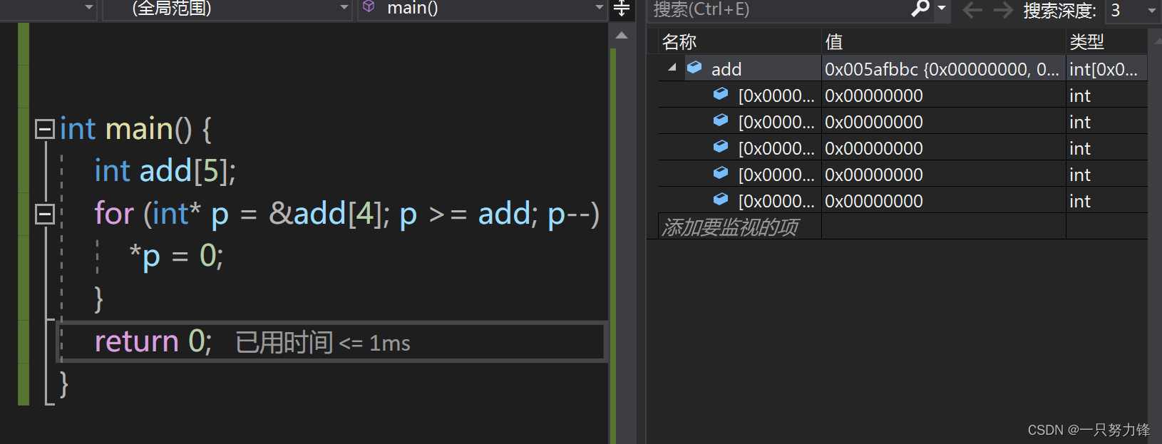 对比上下两段代码我们可以发现它们的作用都是将数组add的元素赋值为0,只是比较的方向不同其实在绝大部分的编译器上是可以顺利完成任务的,然而我们还是应该避免这样写,因为标准并不保证它可行。