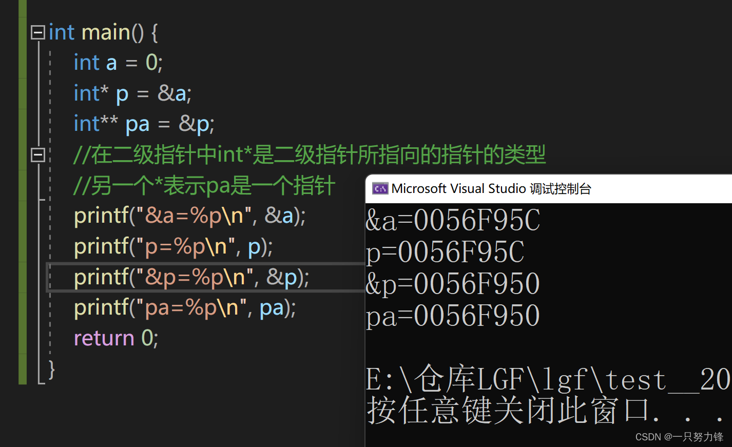 指针变量也是变量,是变量就有地址,那指针变量的地址存放在哪里?