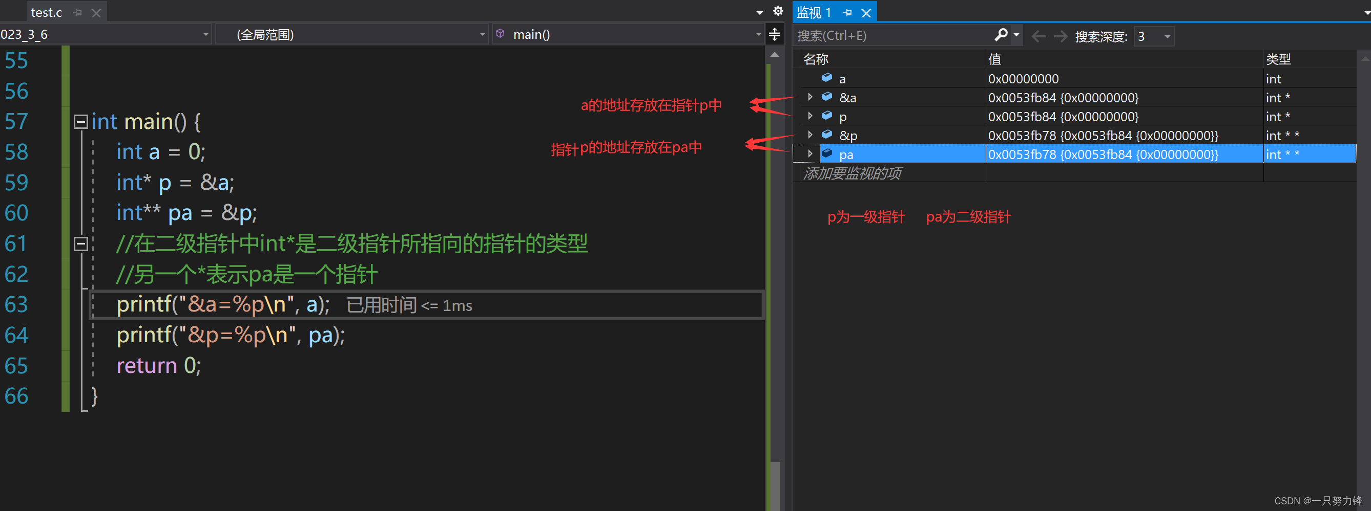 那么根据一级指针我们是不是可以通过对指针p的地址解引用来访问p,再由p访问到啊。