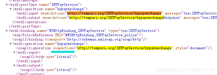 sb.append(" <a:Action s:mustUnderstand=\"1\">http://tempuri.org/IHYPayService/hypayexchange</a:Action>");