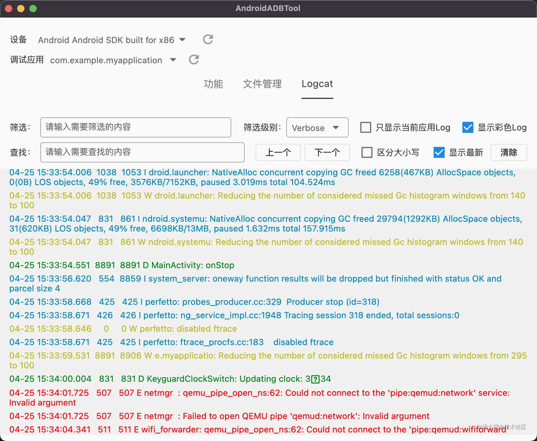 通过执行ADB命令来操控Android设备,实现一些常用的功能,方便在进行Android开发时进行调试,目前在Windows和Mac OS可以运行,Linux上待验证,支持一些常用ADB命令以及文件管理,并且支持拖拽文件进行文件传输和安装APK,支持Logcat功能。