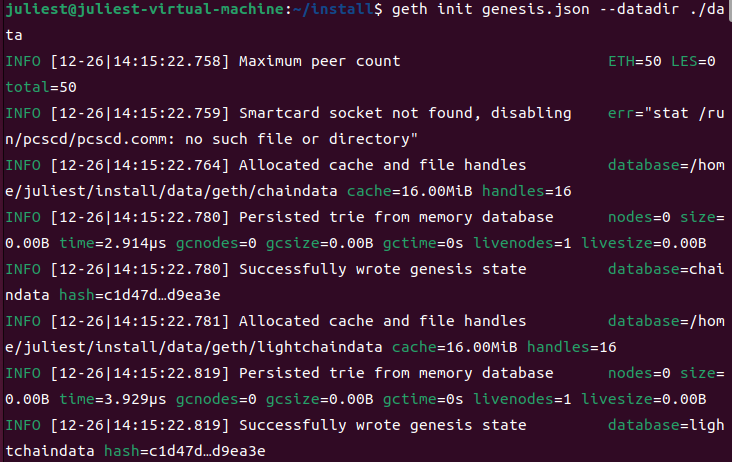 geth init genesis.json --datadir ./data