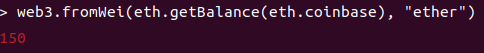 web3.fromWei(eth.getBalance(eth.coinbase), "ether")