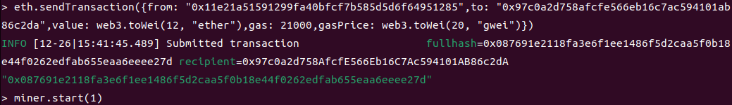 miner.start()开始挖矿(参数为挖矿时使用的线程数)