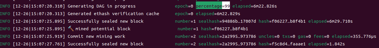 Persentage=100 后就可以开始挖矿了