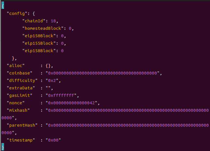 然后我们来编写创世区块文件