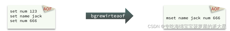 所以重写命令后,AOF文件内容就是:mset name jack num 666