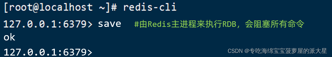 save命令会导致主进程执行RDB,这个过程中其它所有命令都会被阻塞。只有在数据迁移时可能用到。
