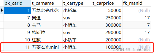 carService.addCar(new CarBean("五菱宏光mini","小轿车",100000))