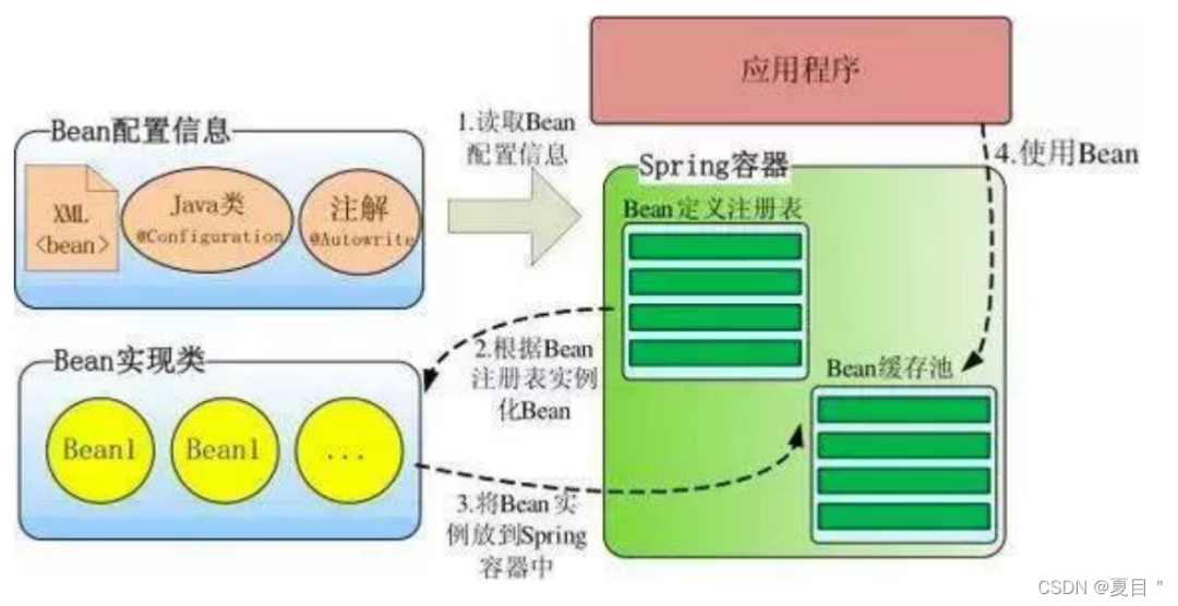 置注册表,然后根据这张注册表实例化 Bean,装配好 Bean 之间的依赖关系,为上层应用提供准