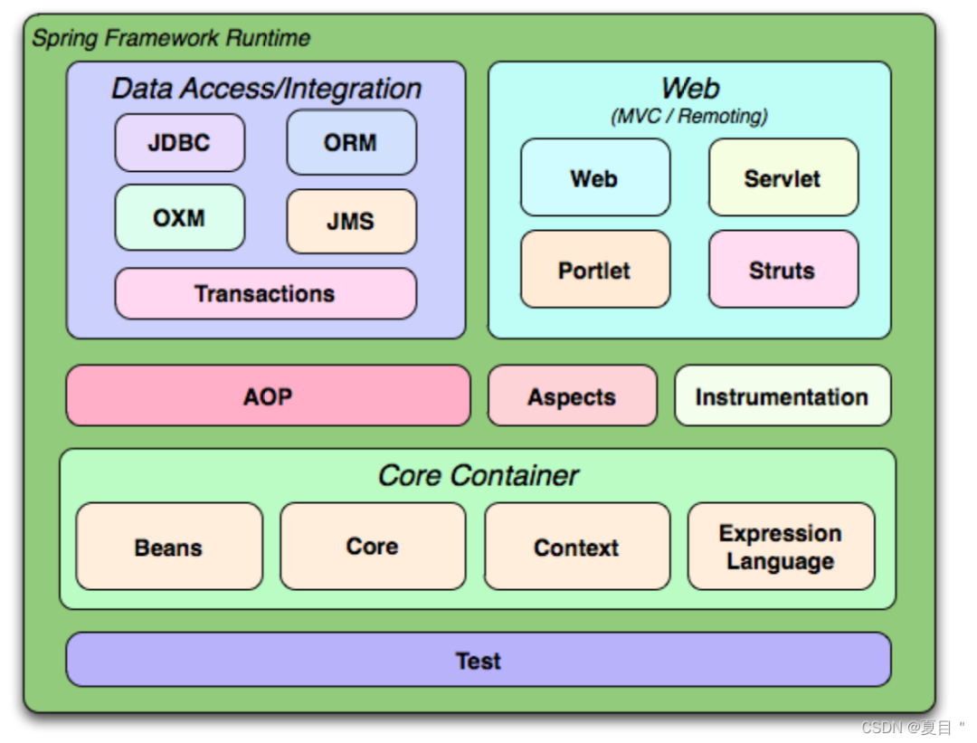 spring core:提供了框架的基本组成部分,包括控制反转(Inversion of Control,IOC)和依赖注入(Dependency Injection,DI)功能。 -