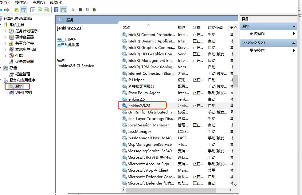 就可以看到jenkins服务啦,点击更多操作就可以启动、结束、重启等操作。