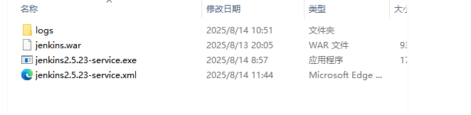下载winsw.exe,https://github.com/winsw/winsw/releases下载完成后重命名为jenkins2.5.23.exe(自定义)。jenkins服务部署windows服务上。如下: