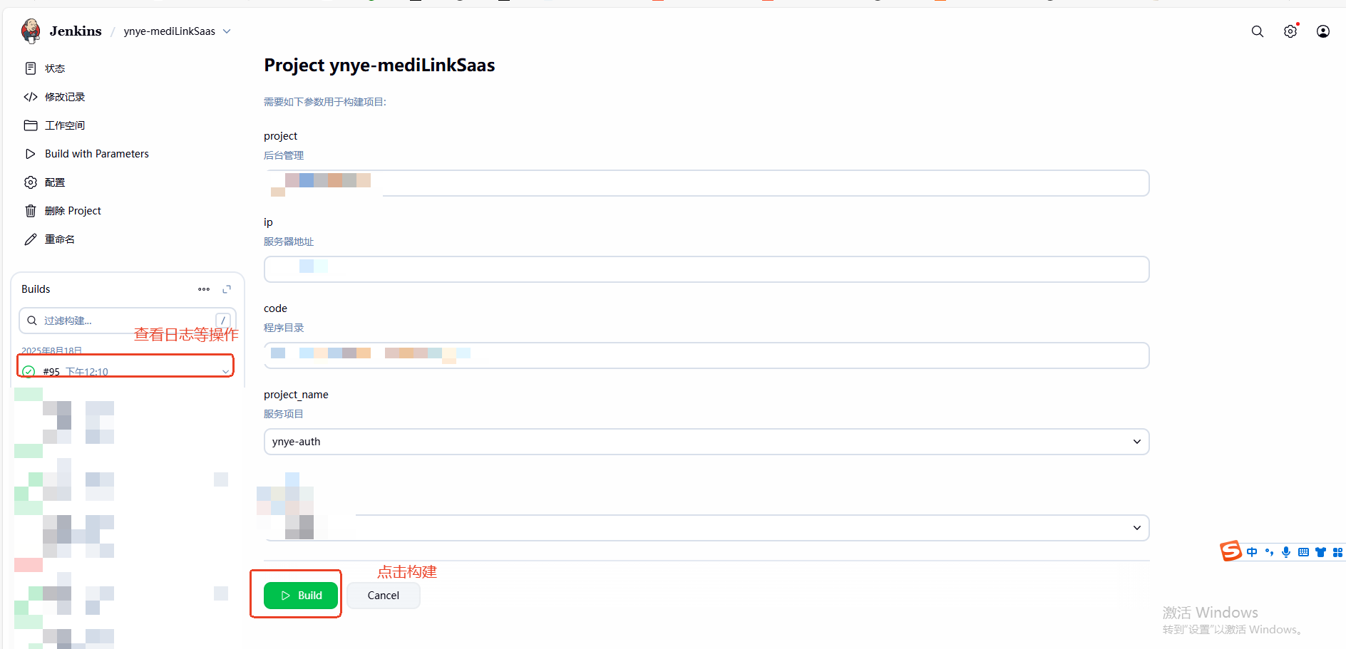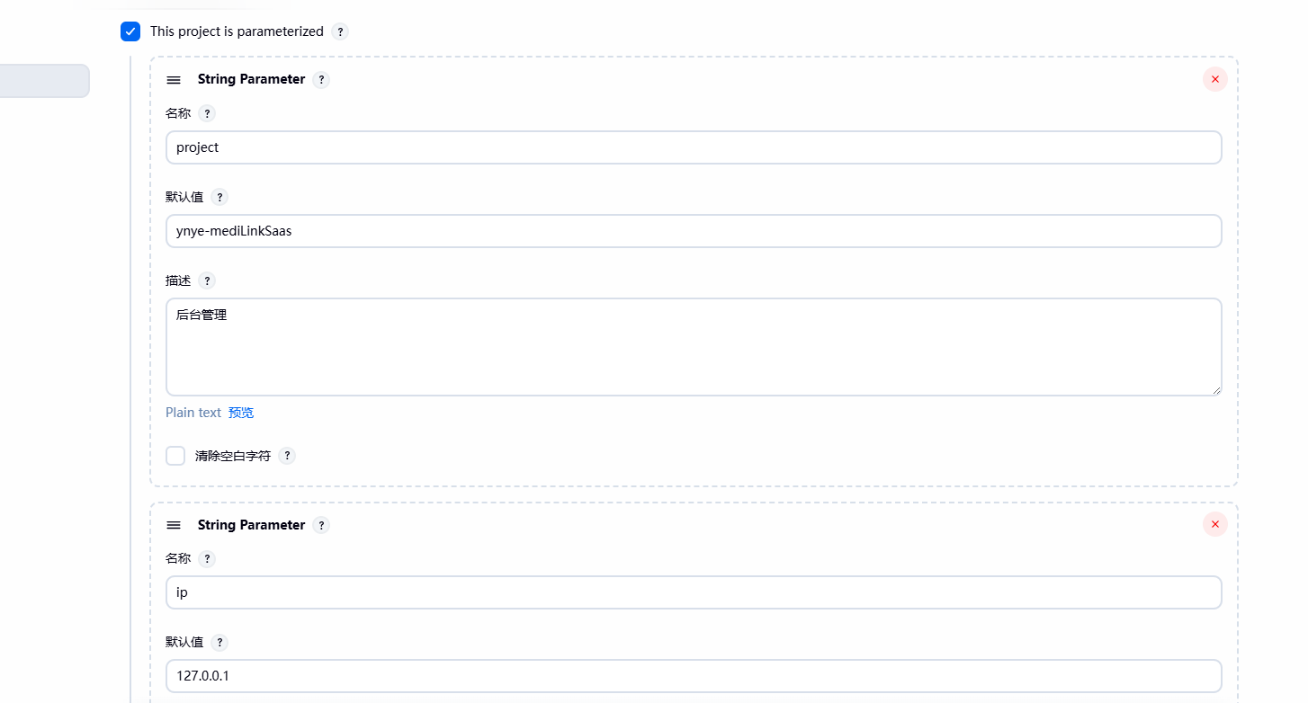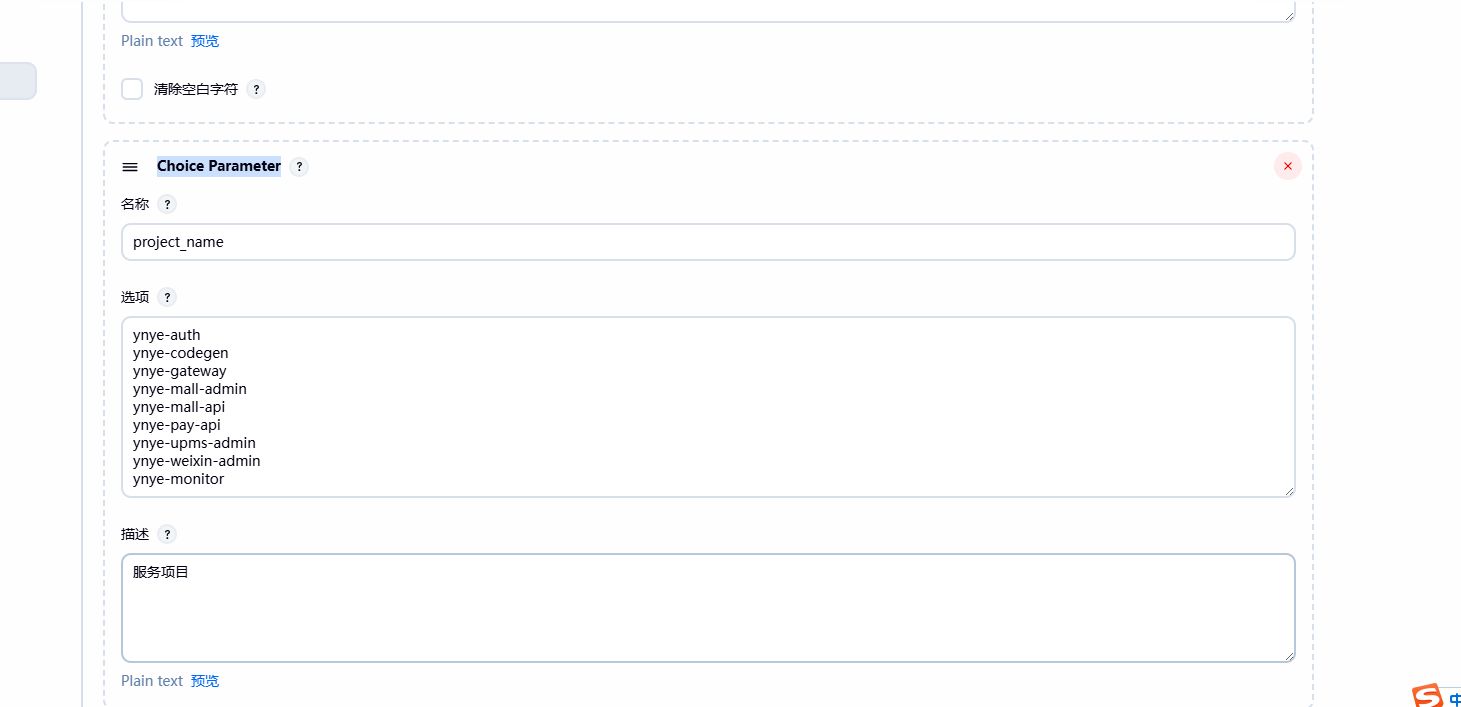 效果:这里就可以选择对应的参数构建,特别适合服务多的项目,可以指定其中一个项目进行构建,而不需要构建整个项目。
