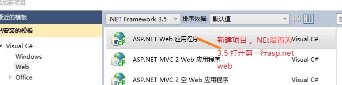 1.新建项目--打开将.Net farmwork设置为3.5-新建ASP.Net Web应用程序