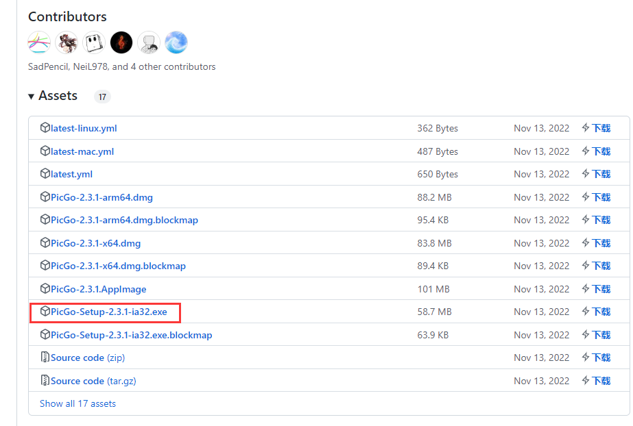 PicGo下载链接:https://github.com/Molunerfinn/PicGo/releases