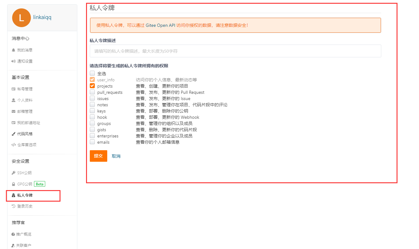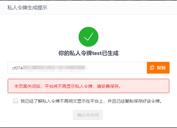 2.1.2、生成一个私人令牌
