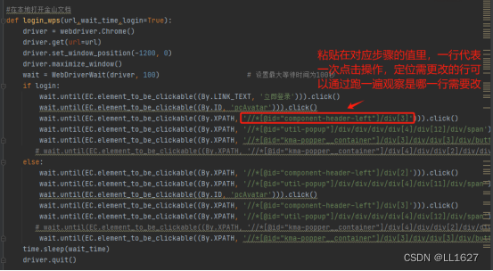自动脚本的逻辑,python控制浏览器,等待出现某某(页面加载中不会出现的元素,加载成功后才出现的)html元素时(有设置最长等待秒数),进行下一步,即根据设置的xpath进行元素定位并点击操作。由此一步步控制浏览器:金山文档的话,点击用wps打开文件,等待设定秒数后自动关闭浏览器;群辉文档的话,点击下载文件以后,判断下载目录下面是否出现某某文件名.xlsx的文件,出现了则表示下载完成,控制关闭浏览器。