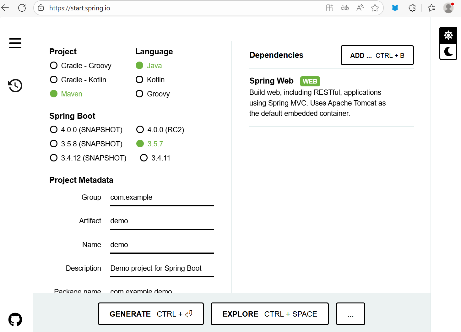 1. 打开 https://start.spring.io