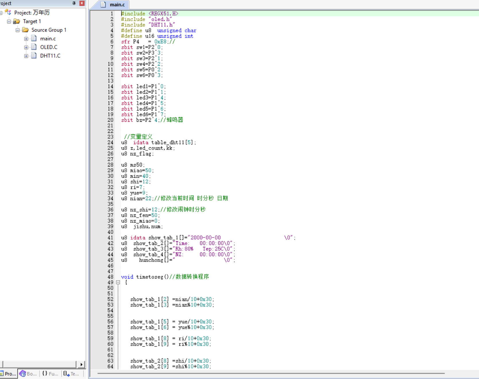 制作一个万年历,具有显示时间、日期、温度、湿度、阐钟动能。